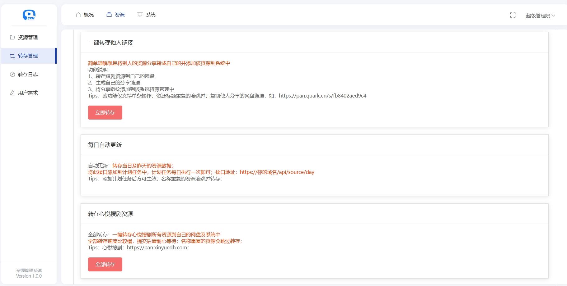 这是一款专为短剧爱好者打造的“心悦多盘”资源搜索与转存系统的开源源码,此次更新特别新增了对迅雷云盘转存导入的支持,。 – 优化首页排行榜序号显示,修正特定情况下的报。 – 针对上个版本已知的漏洞与问题,进行全面修复,这是一款专为短剧爱好者打造的“心悦多盘”资源搜索与转存系统的开源源码,此次更新特别新增了对迅雷云盘转存导入的支持,实现了一键批量导入功能,极大地提升了操作效率。颤立诚已对系统进行了初步测试,效果令人满意。热爱探索的你,不妨亲自部署体验!